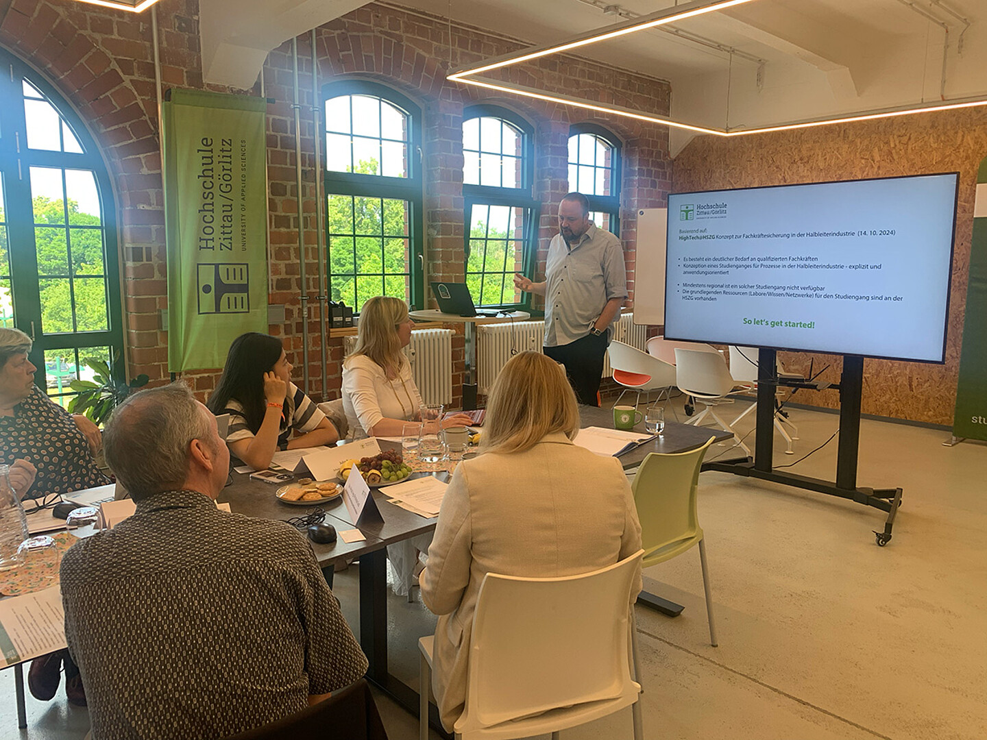 Der Workshop knüpfte an die International Business Conference vom 9. April 2025 an, die sich mit den Möglichkeiten zur Steigerung der Standortattraktivität der Oberlausitz für die Halbleiterindustrie, regionalen Zulieferpotenzialen und der Fachkräftesicherung beschäftigte. (Hier geht es zum International Business Conference-Video.) Der aktuelle Workshop fokussierte gezielt auf das Thema Fachkräftesicherung – insbesondere auf die Weiterentwicklung dualer Studienformate und die Gestaltung neuer Studiengänge im Halbleiterbereich.