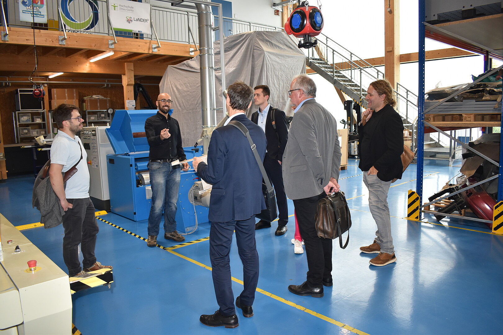 Die Gäste zeigten sich beeindruckt vom konkreten Anwendungsbezug und der regionalen Strahlkraft des Projekts, insbesondere mit Blick auf die Entwicklung neuer Fertigungsprozesse in enger Kooperation mit der Wirtschaft – die im Rahmen des Rundgangs praxisnah demonstriert wurden. LaNDER³ trägt damit sichtbar zur Profilbildung der HSZG, zur regionalen Wertschöpfung und zur Schaffung zukunftsfähiger Arbeitsplätze bei. Als Teil des Bundesprogramms FH-Impuls („Forschung an HAW“) trägt LaNDER³ aktiv zur Umsetzung der Nationalen Bioökonomiestrategie bei und ist damit in übergeordnete politische Innovationsprozesse eingebunden.