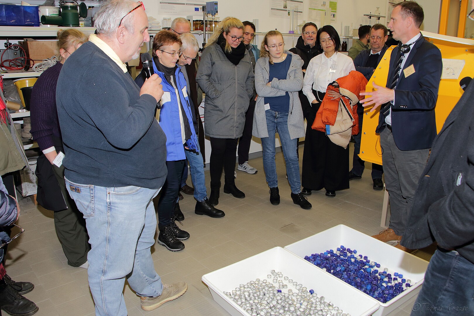 Im Rahmen des „Open Research Institute Day“ machten wir das Labor für mechanische Verfahrenstechnik / Umwelt- und Recyclingtechnik auch für die Teilnehmer des Workshops zugänglich. Die Führung wurde von Prof. Jens Friedrich geleitet und umfasste auch praktische Vorführungen von Sortiertechnologien.