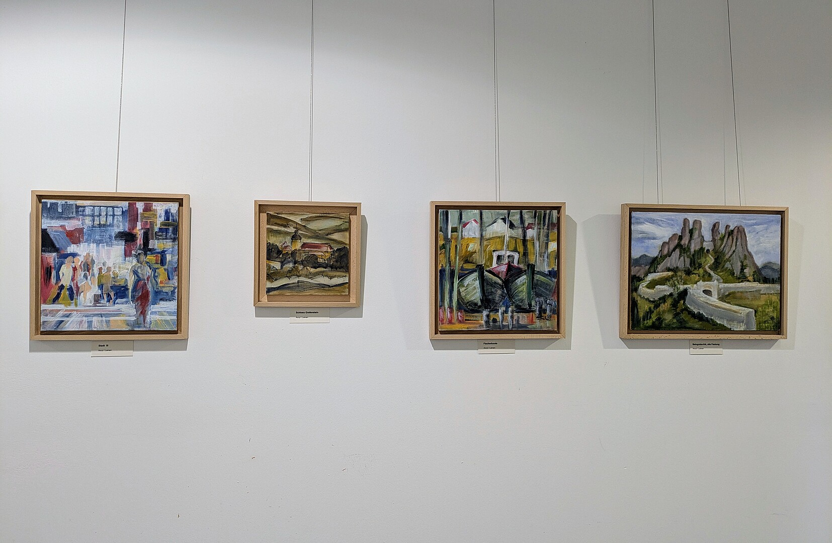 Andere Werke spiegeln Reiseziele oder Themen aus Stadt und Natur wider.