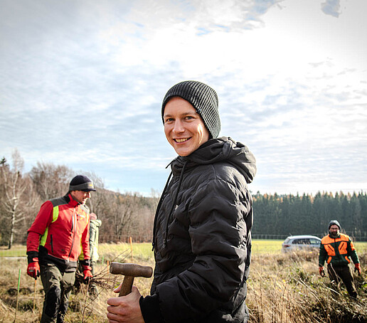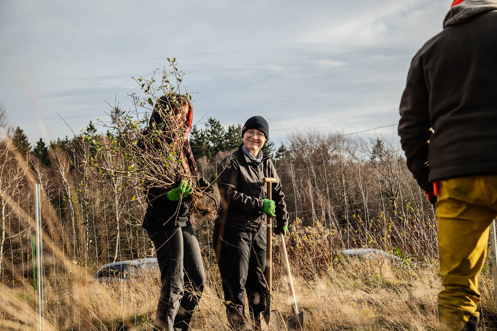 Der Boden lässt sich aktuell hervorragend bearbeiten – und ein paar Bäume im Winterwald zu pflanzen, hat seinen ganz eigenen Charme.